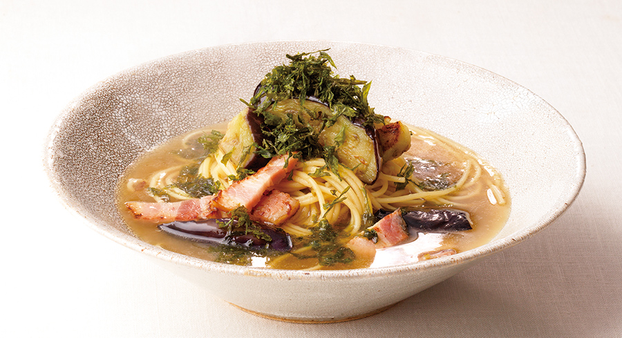 だしで炊くことで、パスタの芯までだしが染み込み、最後までうまみの余韻が続く一皿に。